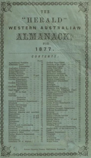 Almanack courtesy of the National Library of Australia. The originals can be viewed on their website Trove: Original Almanacks.