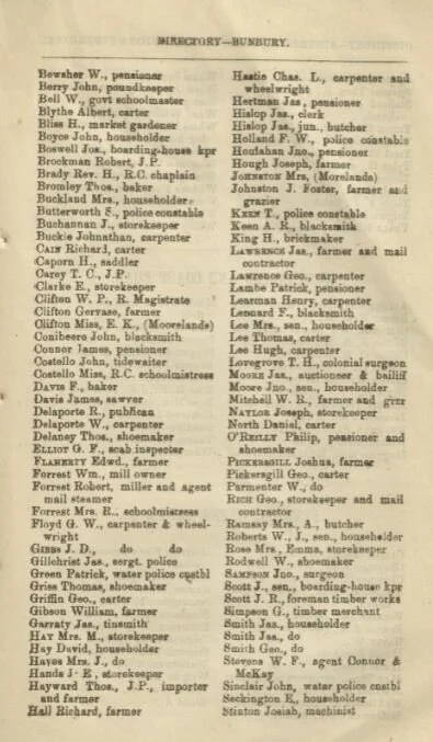 Bunbury Residents 1877