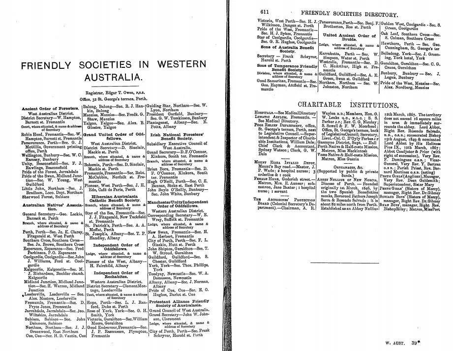Post Office Directory courtesy of the State Library of Western Australia. The originals can be viewed on the State Library of Western Australia’s website: Original Post Office Directory.
