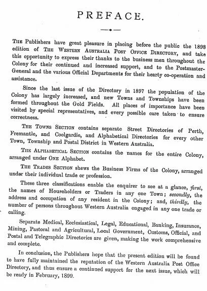 Post Office Directory courtesy of the State Library of Western Australia. The originals can be viewed on the State Library of Western Australia’s website: Original Post Office Directory.