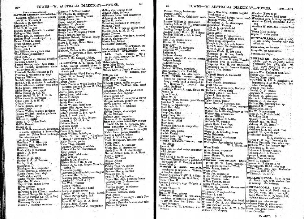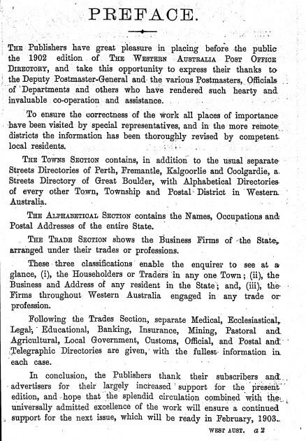 Post Office Directory courtesy of the State Library of Western Australia. The originals can be viewed on the State Library of Western Australia’s website: Original Post Office Directory.