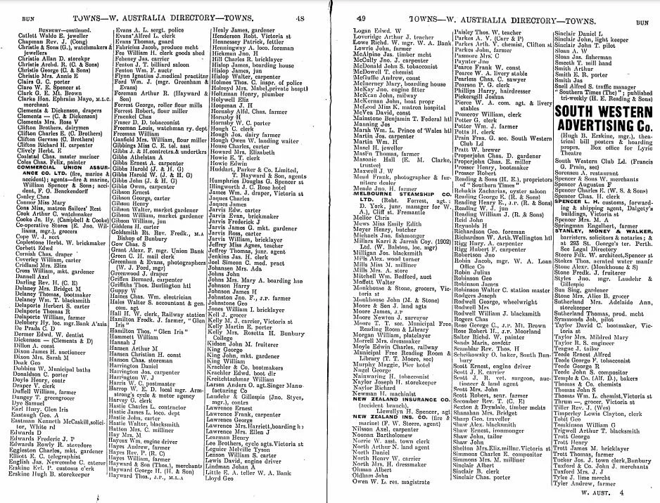Post Office Directory courtesy of the State Library of Western Australia. The originals can be viewed on the State Library of Western Australia’s website: Original Post Office Directory.