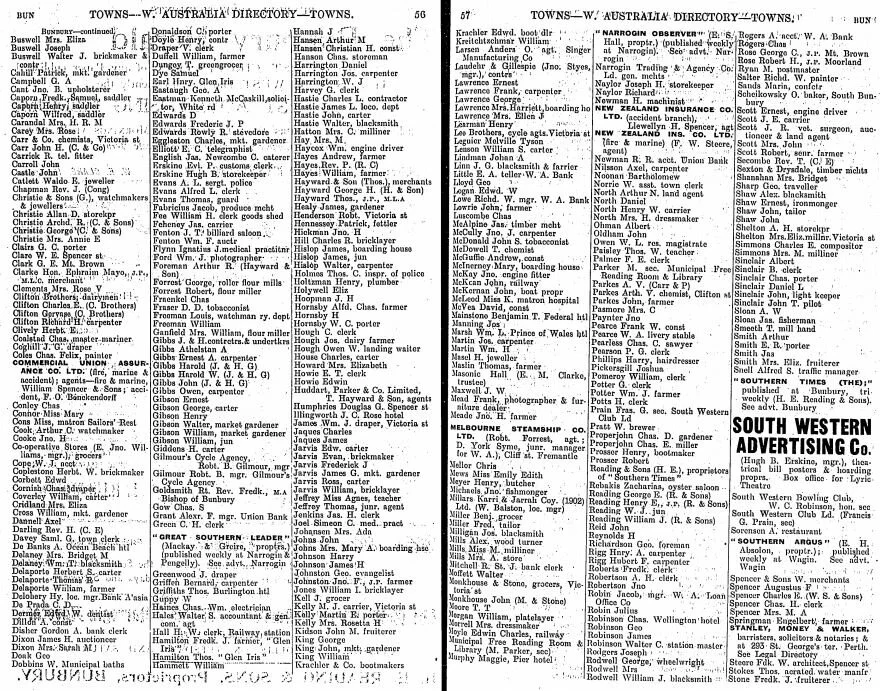 Post Office Directory courtesy of the State Library of Western Australia. The originals can be viewed on the State Library of Western Australia’s website: Original Post Office Directory.