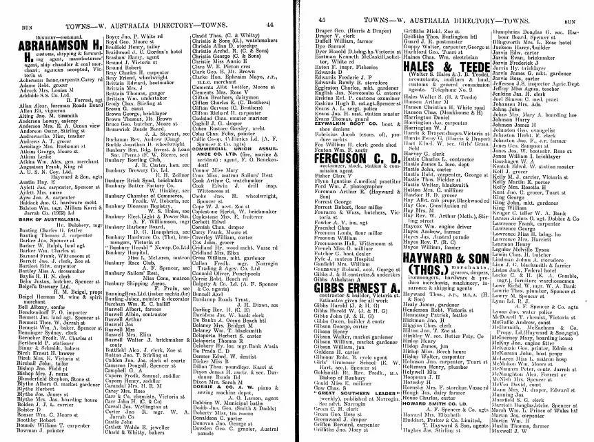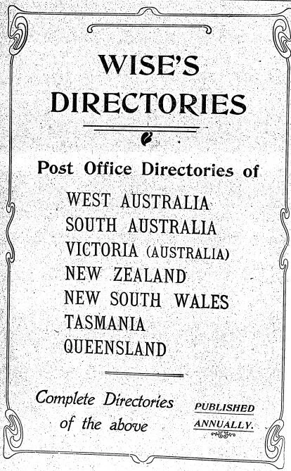 Post Office Directory courtesy of the State Library of Western Australia. The originals can be viewed on the State Library of Western Australia’s website: Original Post Office Directory.