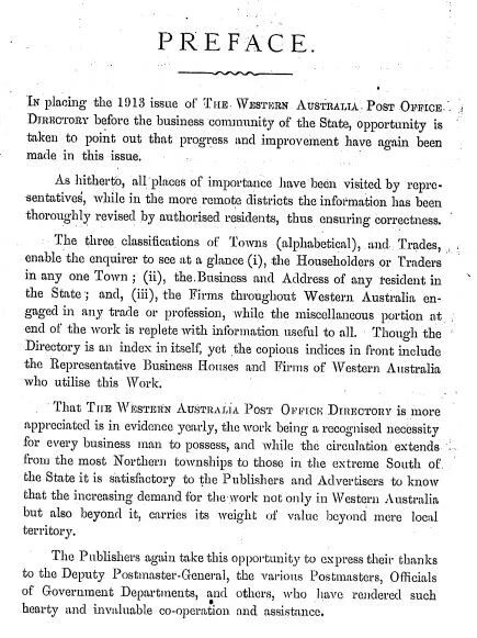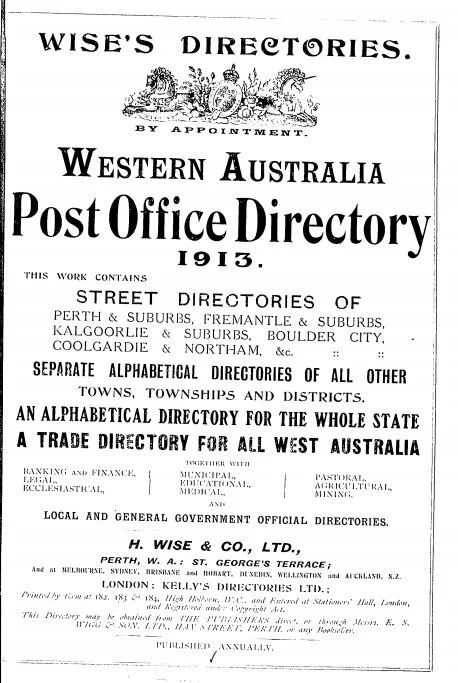 Post Office Directory courtesy of the State Library of Western Australia. The originals can be viewed on the State Library of Western Australia’s website: Original Post Office Directory.