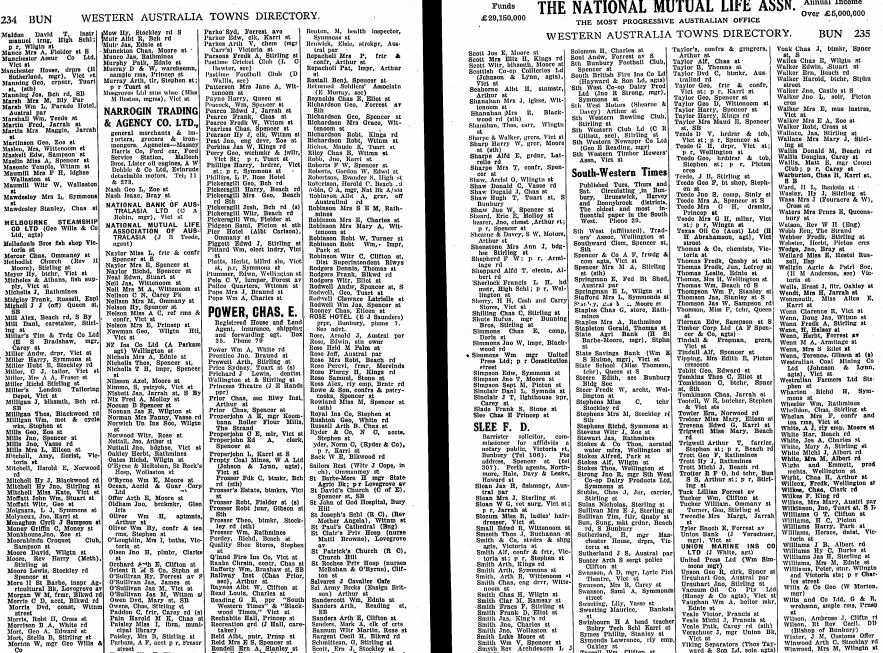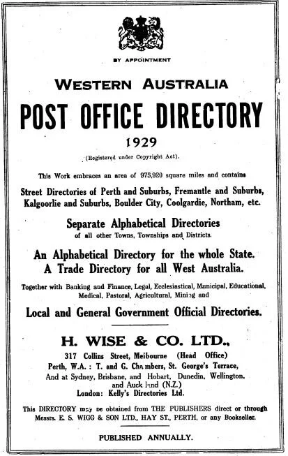 Post Office Directory courtesy of the State Library of Western Australia. The originals can be viewed on the State Library of Western Australia’s website: Original Post Office Directory.