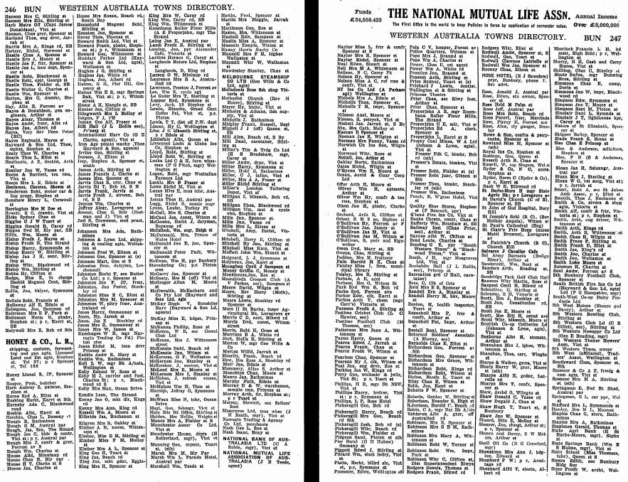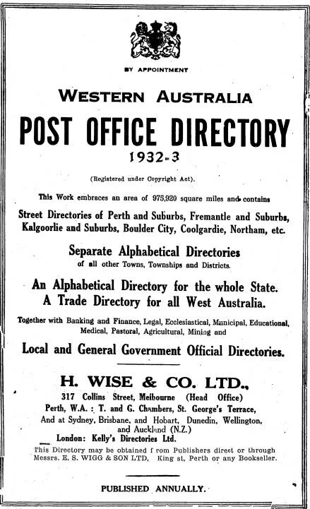Post Office Directory courtesy of the State Library of Western Australia. The originals can be viewed on the State Library of Western Australia’s website: Original Post Office Directory.