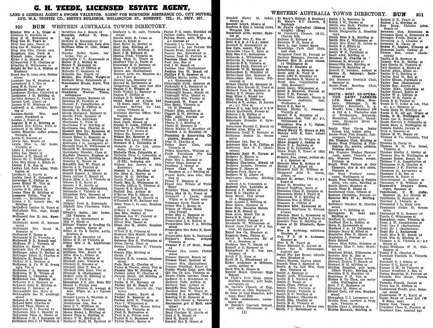 Post Office Directory courtesy of the State Library of Western Australia. The originals can be viewed on the State Library of Western Australia’s website: Original Post Office Directory.