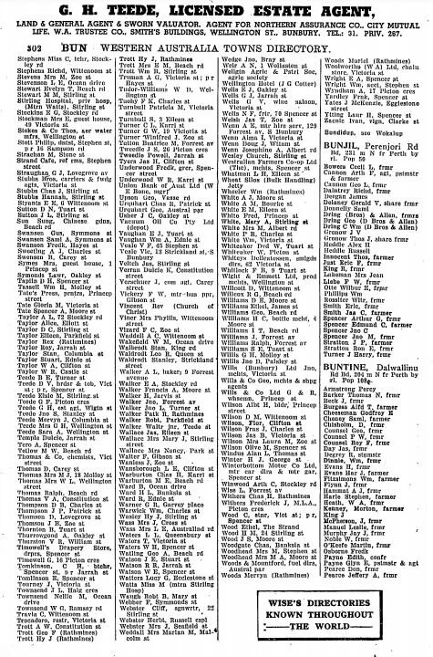 Post Office Directory courtesy of the State Library of Western Australia. The originals can be viewed on the State Library of Western Australia’s website: Original Post Office Directory.