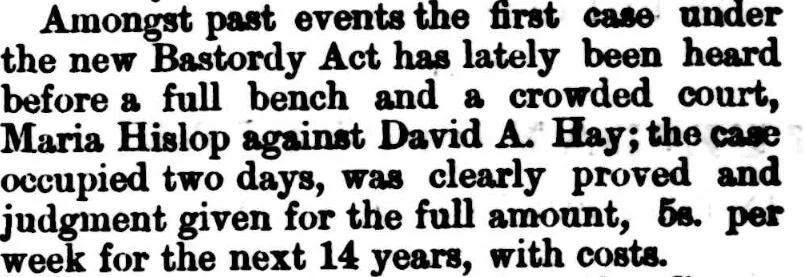 Maria petitioned David for maintenance in 1876 and was awarded five shillings a week for the next fourteen years. It was the first case fought under the then-new Western Australian Bastardy Laws Act of 1875 (reference).