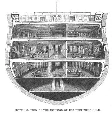 Hulks were decommissioned and usually unseaworthy warships used as floating prisons, moored in estuaries and rivers, as normal prisons were overcrowded.