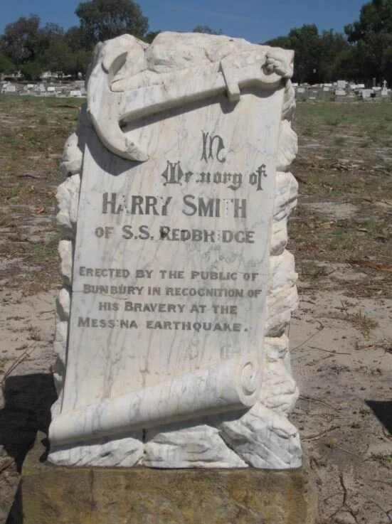 Henry Smith, also known as Harry, was a sailor from Burnley, England, a hero of the Messina Earthquake, and today lays at rest at the Bunbury cemetery (reference).