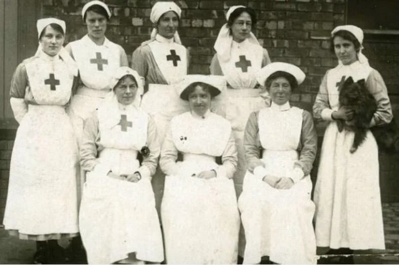 In 1914 Kate again was travelling (reference). She had been to Singapore before travelling to London in June with Marion Spaven, a nursing colleague who was going to England to get married (reference). Kate was to attend a nurses conference then travel for a year before returning to Australia (reference; reference). However, the declaration of war put a halt to her travel plans (reference). By September, Kate had volunteered for service and was sent to Belgium with fifteen other British nurses to care for the wounded (reference). Kate was attached to the French Red Cross run by Lady Dudley (reference).