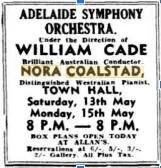 Nora had intentions of following Grainger’s advice in the future but she continued her studies in Melbourne for another year and then went to England to do postgraduate studies (reference). On her way there, she holidayed with her parents and gave several performances including one at a musical afternoon which the Mayoress of Fremantle arranged in her honour in the Fremantle Town Hall (reference).