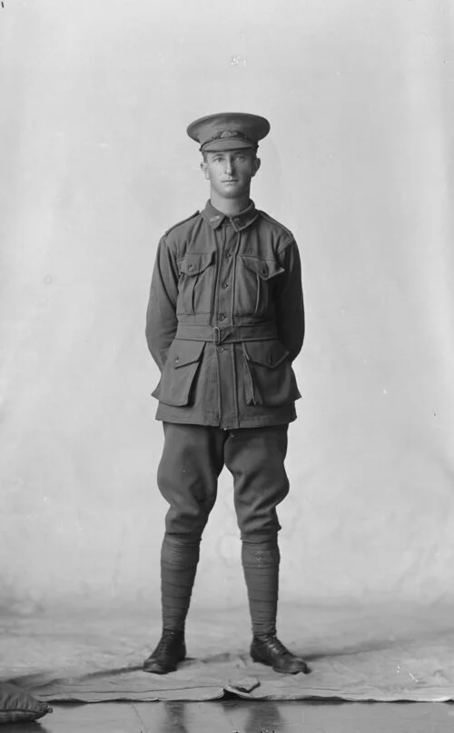 William enlisted into the Australian Infantry Force on 18 October 1916 at Bunbury (reference; reference; reference). Before enlisting, he worked as a fireman in Bunbury (reference). He was described as being 5 feet 6 ½ inches tall, weighing 147 pounds, fair-skinned, grey eyes, brown hair and a member of the Church of England (reference). He went through his preliminary training at Blackboy Hill Camp in Perth before sailing for England on 23 December 1916 on the Berrima from Fremantle to complete his training (reference; reference). He was given his service number, 6399, the rank of Private and assigned to the 50th Australian Infantry Battalion (reference).